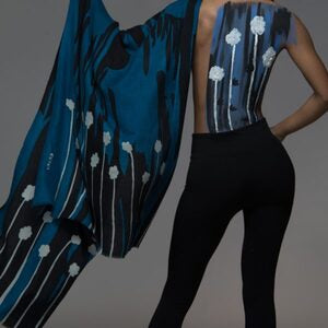 MIDNIGHT BLOSSOMS is inspired by the blooming flowers of the night against the magical background of a moonlit night. Indulge in this luxury cashmere with rich hues, available in hand painted or screen printing options.